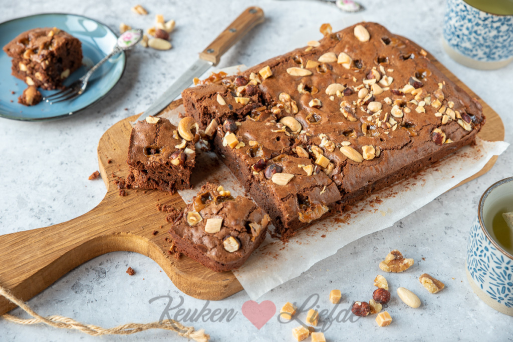 - 80 g fudgeblokjes salted caramel (bijv. Lonka), in nog kleinere blokjes gesneden