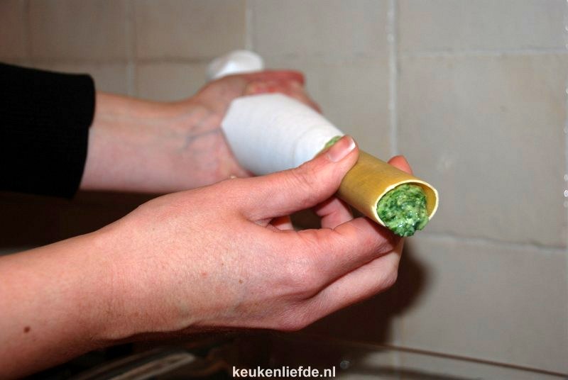Deze cannelloni met spinazie, ricotta en bechamelsaus is een echte allemansvriend. Ik liep vroeger altijd te stoeien met het vullen van de gekookte en zachte canneloni’s, maar inmiddels heb ik daar wat op gevonden: ik vul de ongekookte canneloni’s met behulp van een spuitzak. Een fluitje van een cent!