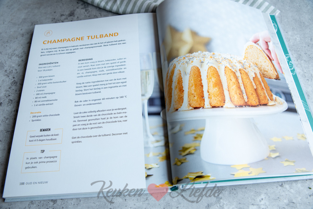 Ik ben dol op bakken maar het moet niet te ingewikkeld zijn. Deze champagne tulband is supermakkelijk om te maken en heeft het wow-effect waar ik altijd naar op zoek ben. Het recept komt uit Het Laura’s Bakery Feestdagen Bakboek. In dit nieuwe bakboek van Laura Kieft vind je meer dan 80 makkelijke en feestelijke recepten voor alle feestdagen in een jaar: van valentijn tot oud en nieuw. Voorin het boek vind je een handig lijstje met de ongeschreven bakregels en beantwoordt Laura de meest gestelde bakvragen. Achterin het boek is een hoofdstuk gewijd aan basisrecepten zoals banketbakkersroom en royal icing en vind je handige templates. De duidelijke receptomschrijving en de prachtige foto’s inspireren je om zelf aan de slag te gaan en prachtige bakcreaties op tafel te toveren. Deze champagne tulband komt uit het hoofdstuk ‘oud en nieuw’.