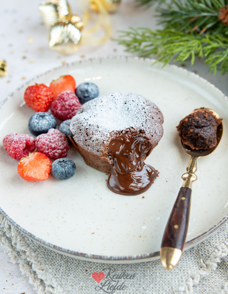 Chocolade lava cakejes zijn pure verwennerij: een zacht gebakken chocoladecakeje met een lopende vulling die eruit stroomt bij de eerste hap. Serveer ze met wat vers fruit, zoals frambozen, aardbeien en blauwe bessen, voor de perfecte balans. Een heerlijk dessert waar je iedereen blij mee maakt.