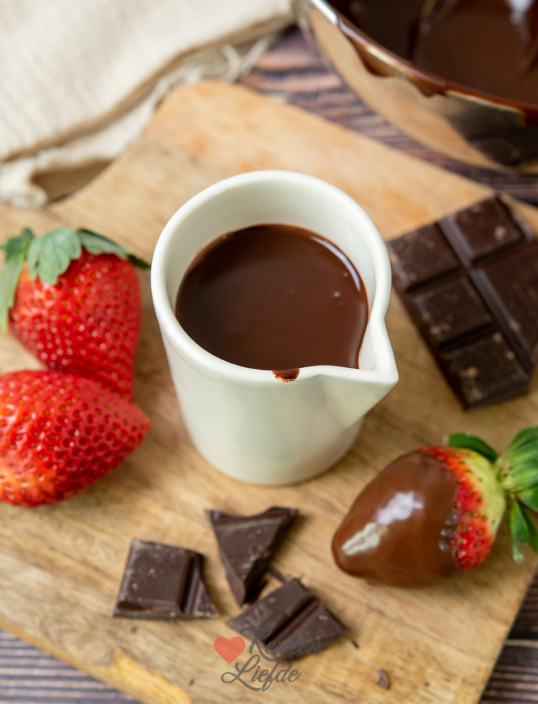 Deze chocoladesaus is heel eenvoudig om te maken en heerlijk. Gebruik hem als dessertsaus over vanille-ijs, flensjes, poffertjes, of profiteroles. Ook lekker om vers fruit zoals aardbei of banaan in de chocoladesaus te dippen. Ik gebruikte hem ook voor een valentijnsontbijtje, dat recept ga ik maandag met je delen. Als de chocoladesaus afkoelt wordt hij dikker. Je kunt hem afgedekt in de koelkast bewaren en later voor gebruik au bain-marie opwarmen zodat hij weer vloeibaar wordt.