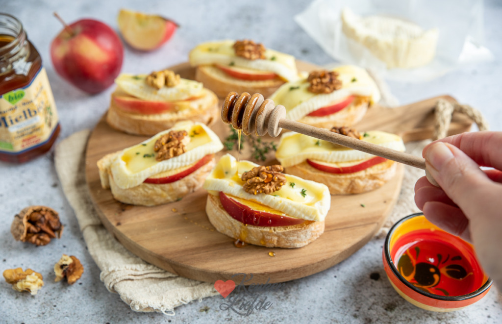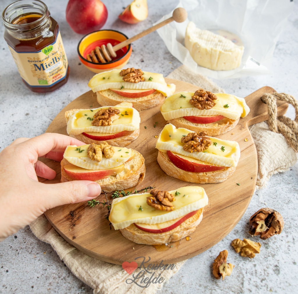 Een keer wat anders serveren aan je gasten dan een blokje kaas of plakje worst? Deze knapperige ciabattabroodjes uit de oven zijn belegd met romige brie, frisse appel en walnoot. Een heerlijk, warm hapje voor op de borrelplank. Een drizzle zoete honing en wat tijm maakt deze ciabatta met brie helemaal af.
