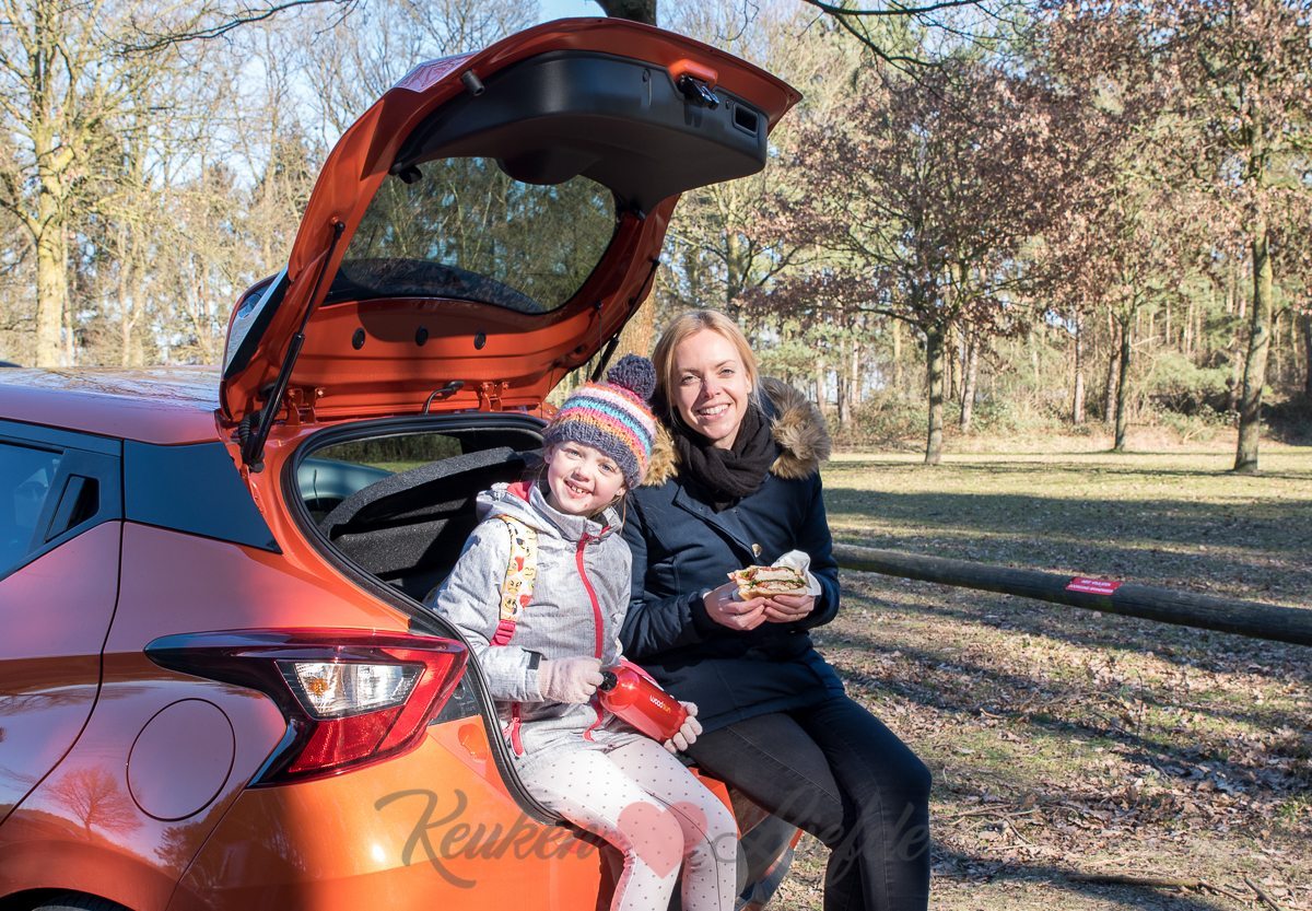 Als we een dagje met het gezin op pad gaan, vind ik het leuk om rond lunchtijd ergens op een mooi plekje te stoppen en te genieten van onze zelfgemaakte broodjes. Omdat ik de Nissan Micra na drie maanden touren weer moet inleveren, namen we het er nog even van. Wat is het toch een kek wagentje hè. 🙂
