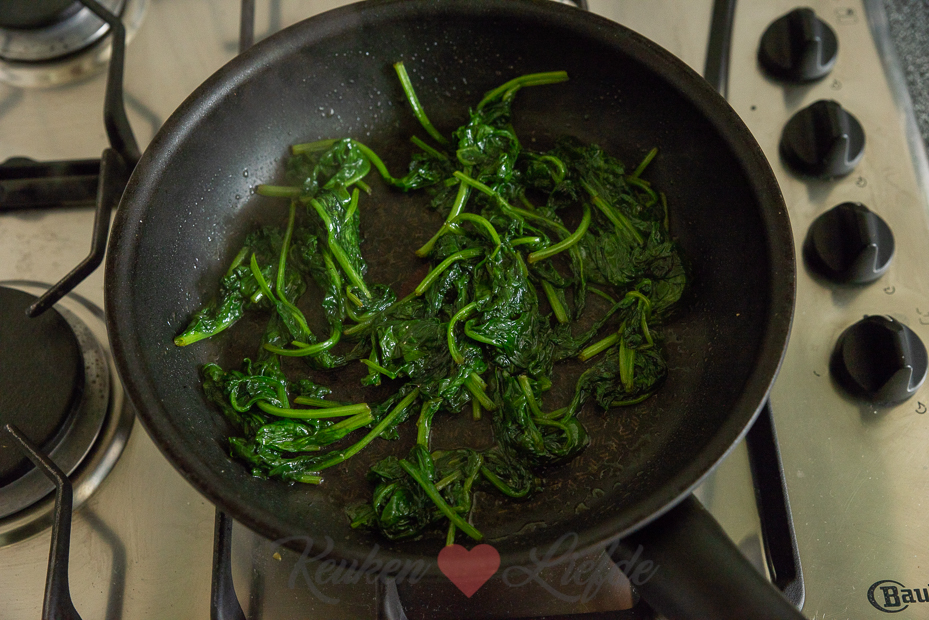 - 600 g verse spinazie, schoongemaakt en grof gehakt