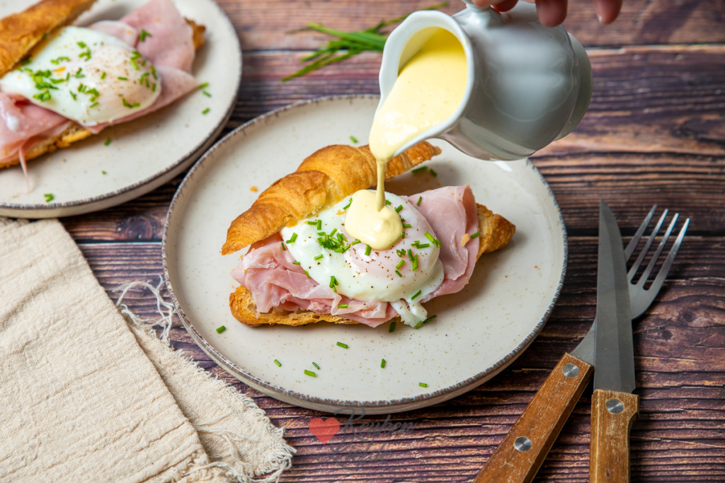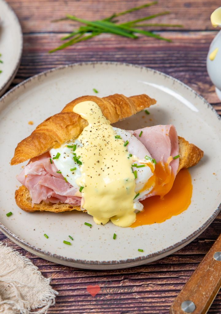 Een lekkere variant op de klassieke eggs benedict waarbij ik het geroosterde broodje vervang door een croissant. Deze croissant benedict met ham, gepocheerd ei en hollandaisesaus moet je zeker proberen. Hij is verrukkelijk! Je kunt de ham ook vervangen door gerookte zalm. Lekker als ontbijt of lunch, maar ook een heerlijk verwengerecht om te serveren met Pasen, Vader-, of Moederdag.