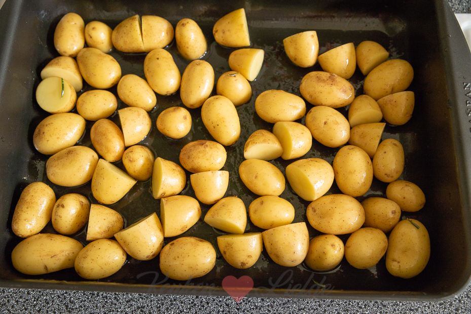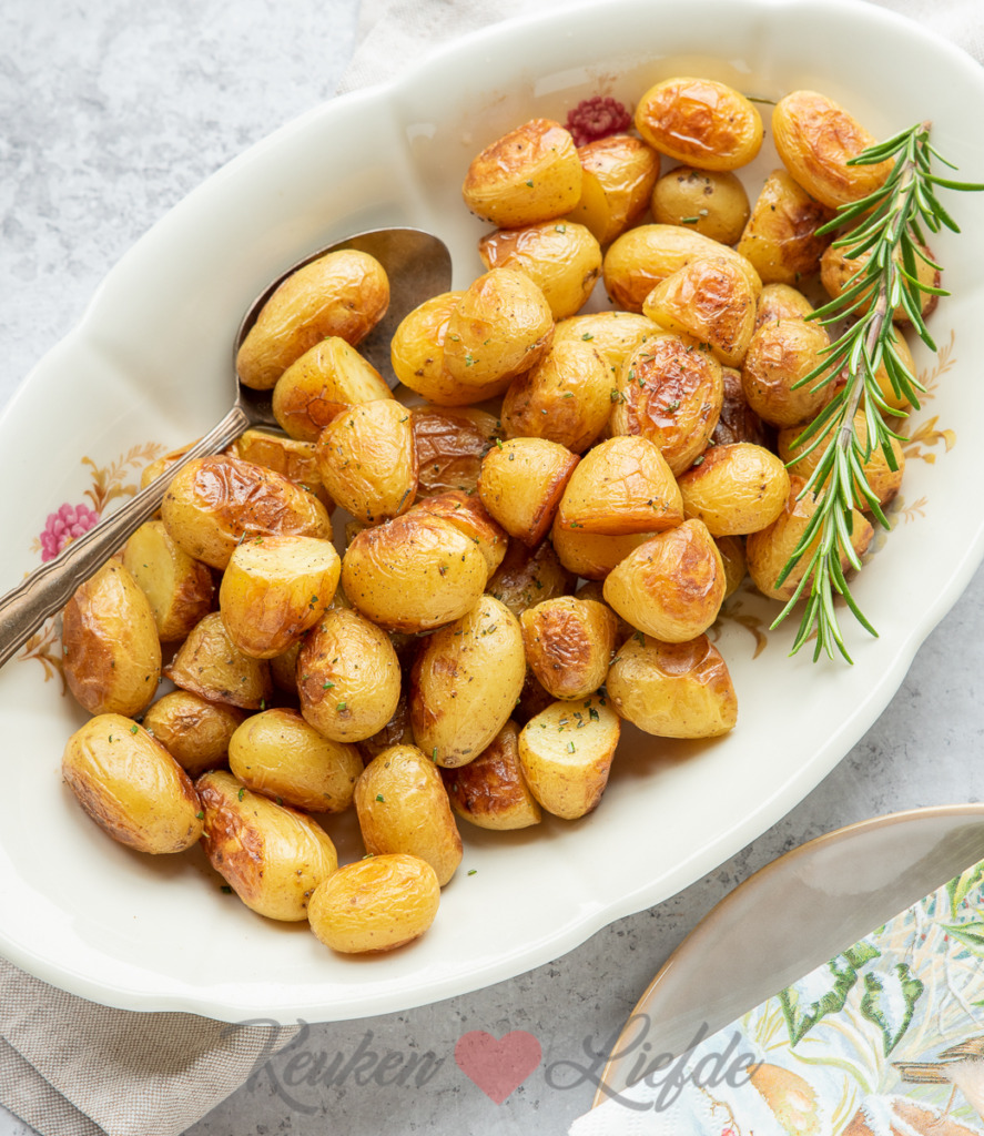 De perfecte ovenaardappel is zacht vanbinnen en krokant en goudbruin vanbuiten. Voor de bereiding gebruik ik een braadslee met dikke bodem, zo kan het eigenlijk niet mislukken! Als smaakmakers voeg ik verse rozemarijn en knoflook toe. Die geven een heerlijke smaak aan de aardappeltjes en maken echt het verschil!