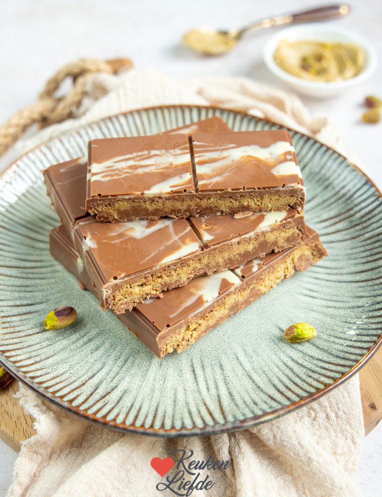 Eindelijk kan ik deze Dubai reep van mijn to make list afvinken. Je hebt hem vast voorbij zien komen op social media, daar ging hij viral! Deze chocoladereep is gevuld met krokante künefe en smeuïge pistachepasta. De Dubai reep wordt tegenwoordig zelfs in de supermarkt verkocht (met een stevig prijskaartje), maar het is veel leuker en vrij eenvoudig om hem zelf te maken.
