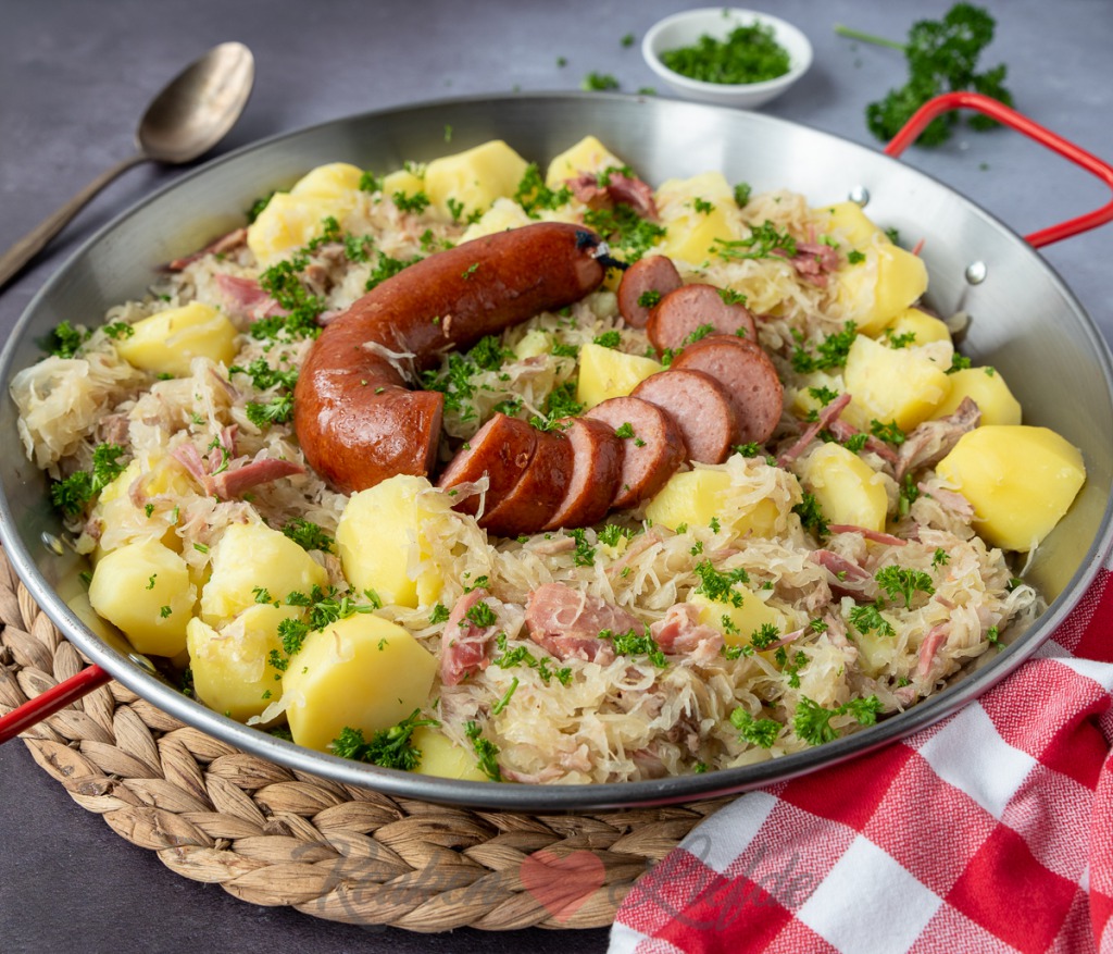 - 1 kg zuurkool, afgespoeld en uitgelekt