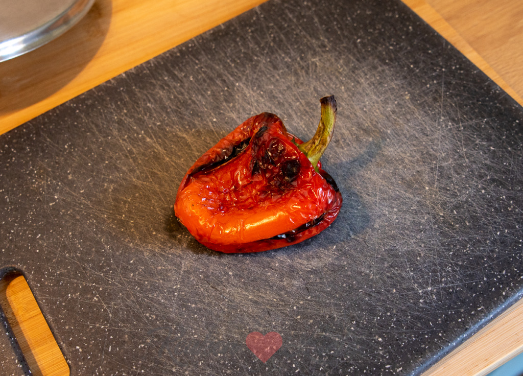 - 1 rode paprika (eventueel kun je ook geroosterde paprika uit een pot gebruiken)