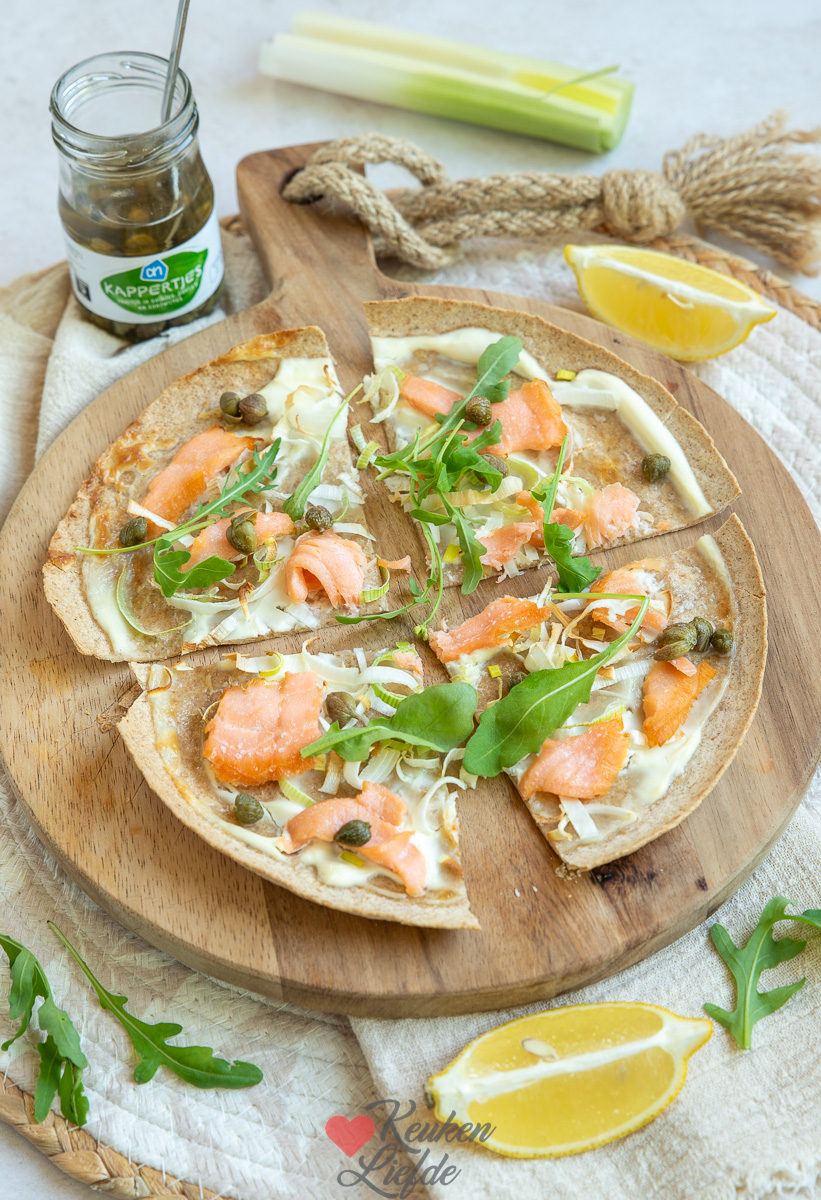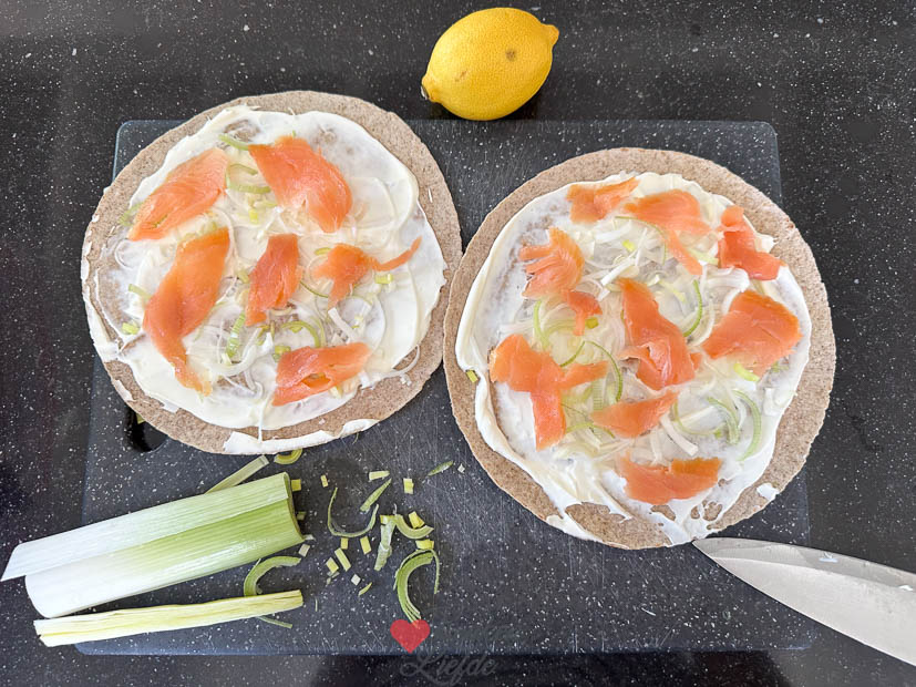Ik heb bijna altijd wraps in huis voor een lekkere maaltijd of om een snelle lunch mee te maken. Deze flammkuchen wrap met zalm maak je in 5 minuten en bak je daarna krokant in de oven of airfryer. Heerlijk als lunch of snijd hem in punten en serveer bij de borrel.