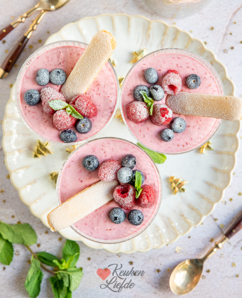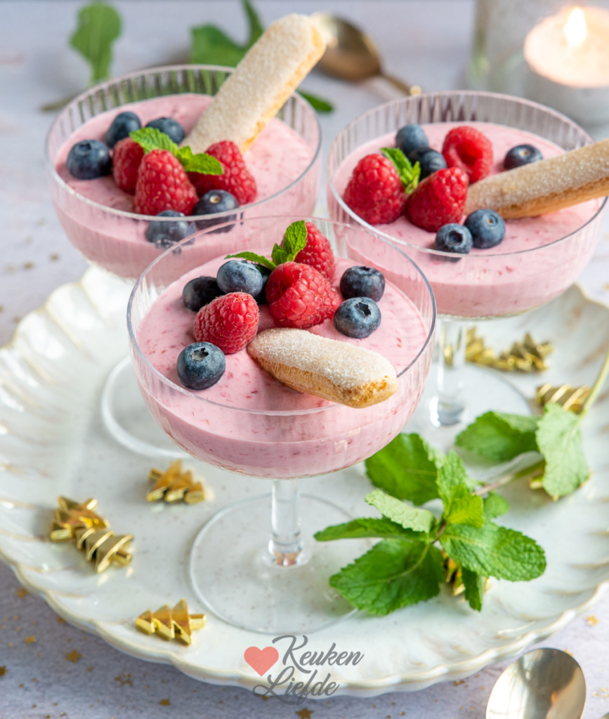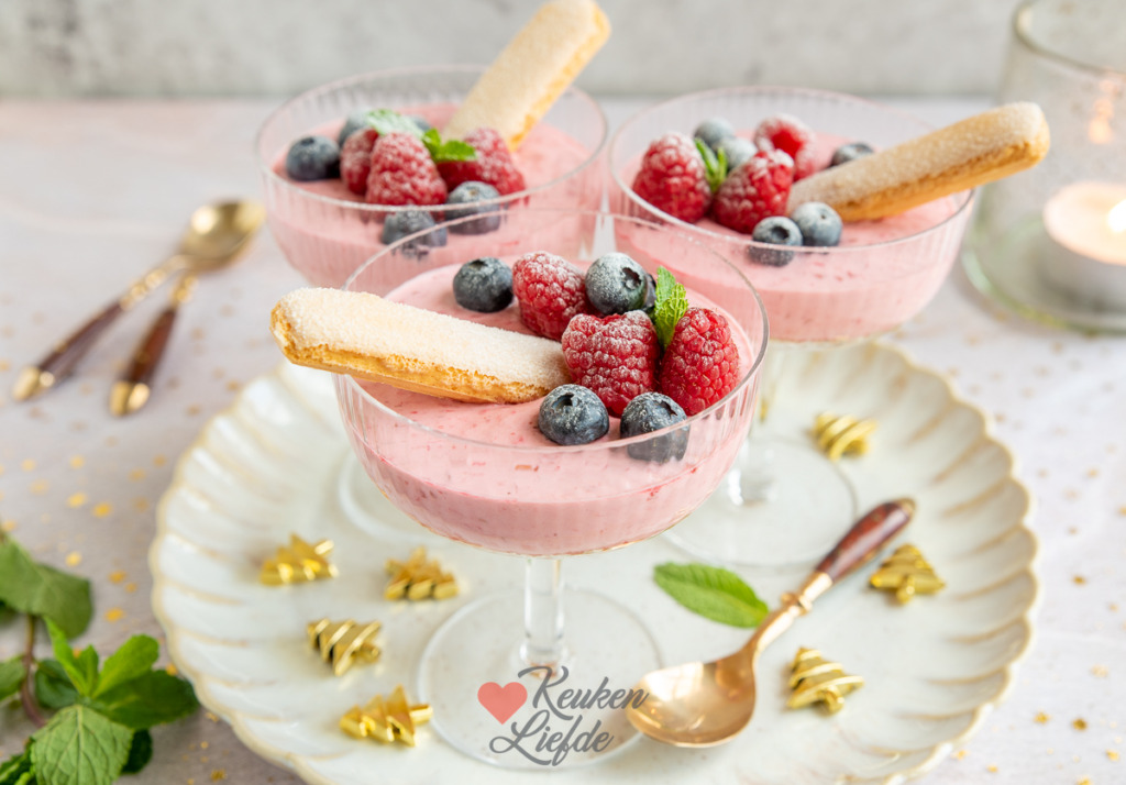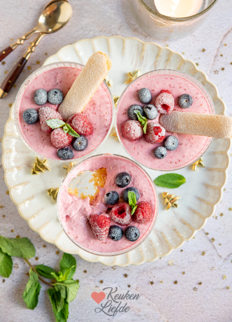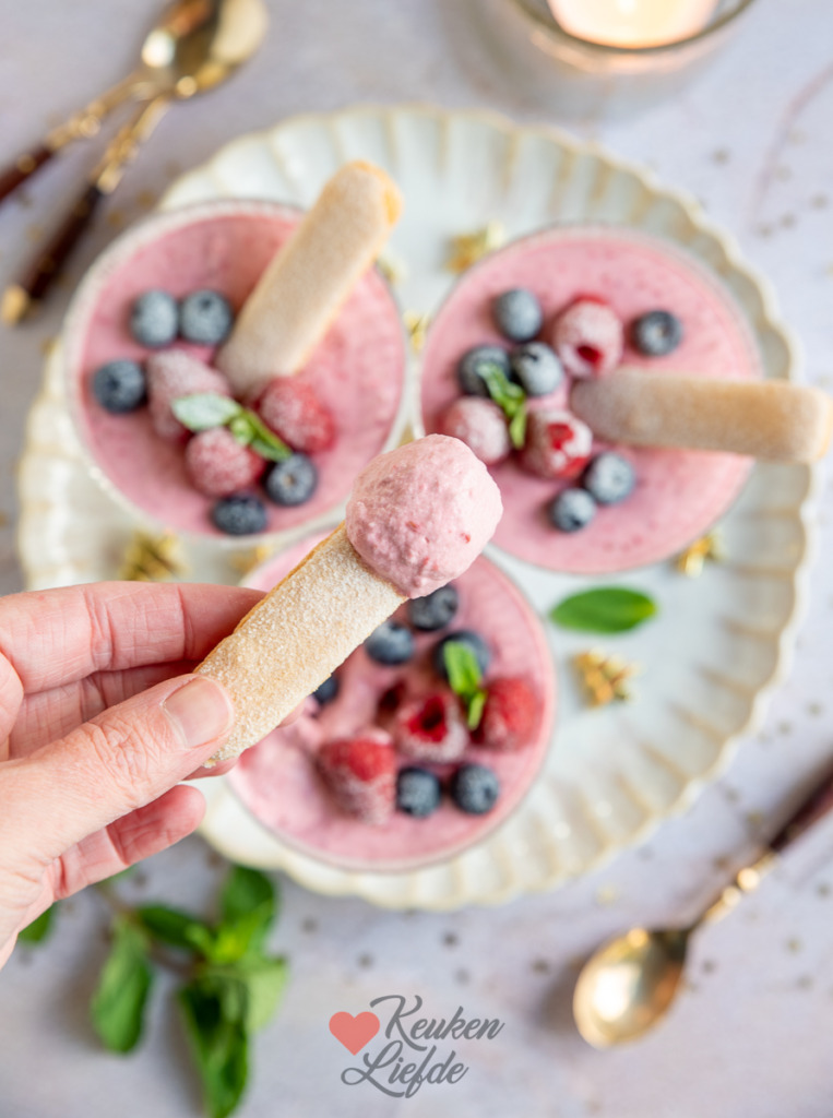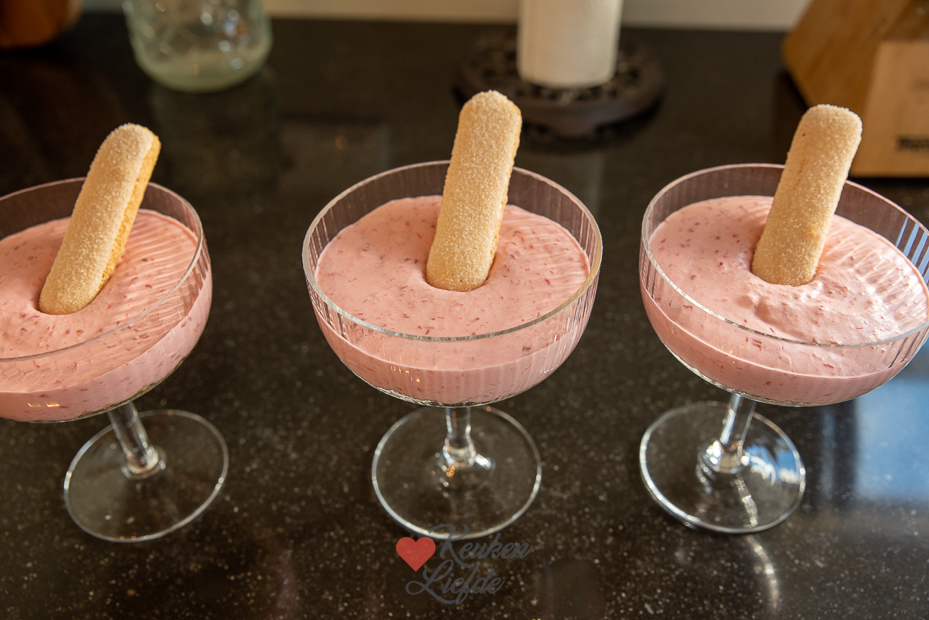 Frambozenmousse toetje met lange vingers