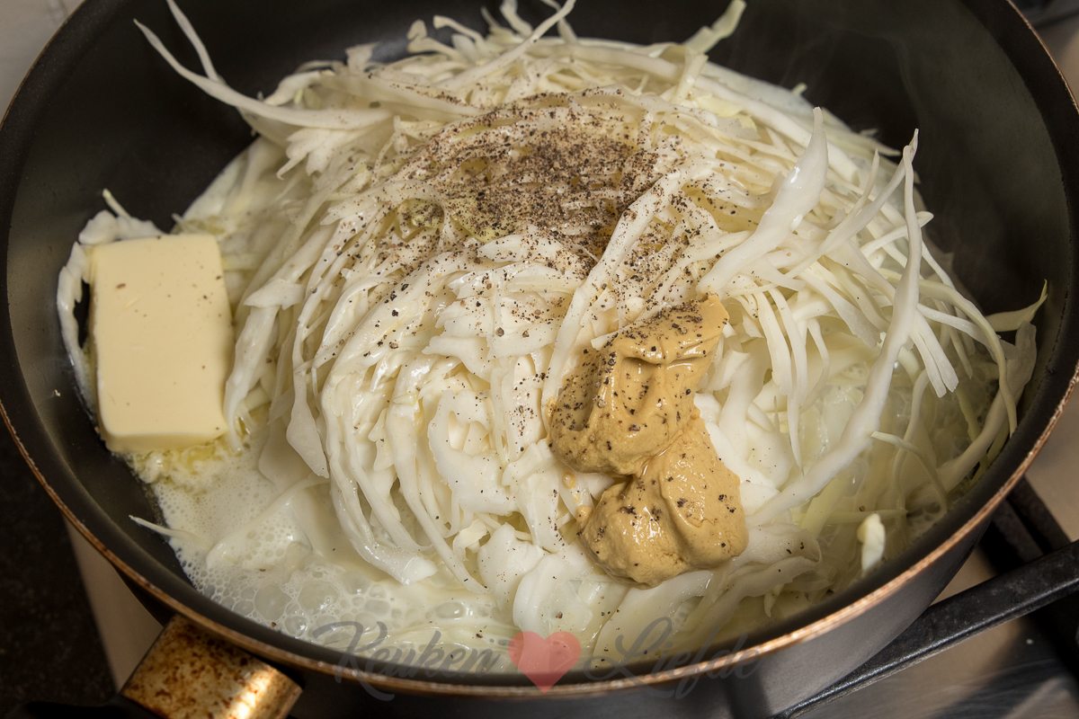 Wittekool is een van mijn favoriete herfst-, en winteringrediënten. Koop altijd een verse wittekool, want daar snijd je zoveel vanaf dat je er meerdere gerechten mee kunt maken. (Zie onderstaande tip!) Deze gesmoorde wittekool in mosterdroomsaus is een van mijn favoriete wittekoolrecepten. Je kunt er alle kanten mee op!