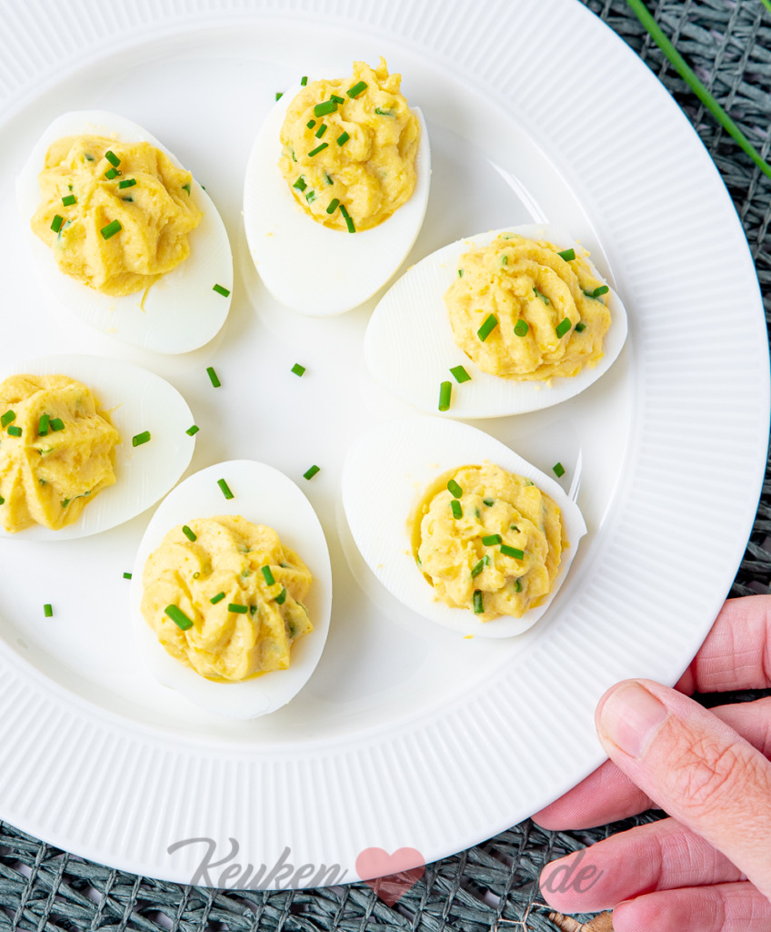 Een heerlijk en eenvoudig basisrecept voor gevuld ei met een vleugje kerrie en bieslook. Deze klassieker mag niet ontbreken op een verjaardag of feestje. Hij stelt nooit teleur!