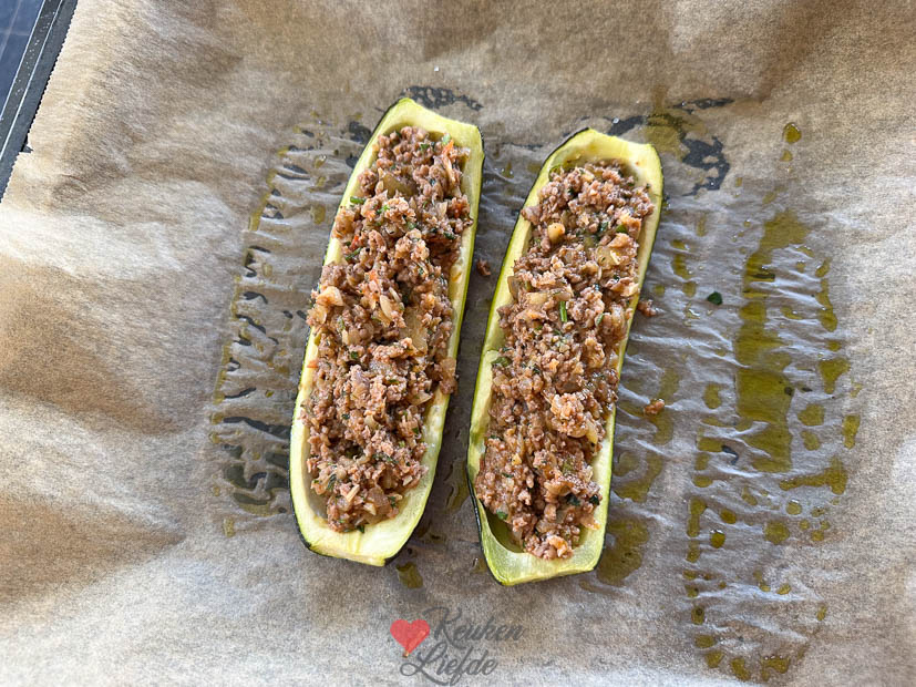 In dit recept vul ik de courgette met rundergehakt en bak ik hem bestrooid met kaas goudbruin in de oven. Wat mij betreft een blijvertje dit.