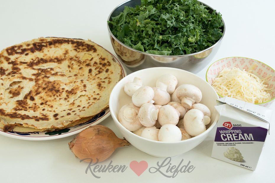 Nu is het tijd voor een variant met boerenkool en champignons. Een heerlijke combi! Dit is een vegetarische variant — je mist het vlees echt niet —, maar wil je toch per se vlees toevoegen, zie dan onderstaande tip. Enjoy!