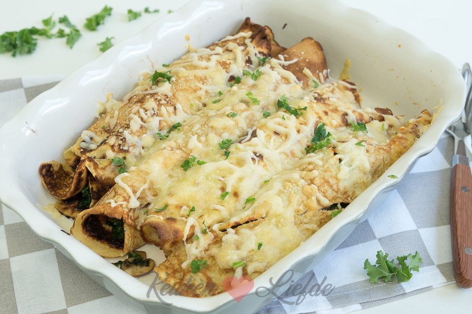 Onlangs had Johan pannenkoeken gebakken en omdat er behoorlijk wat over waren vroor ik ze in. Een pannenkoek op zijn tijd kan ik wel waarderen, maar nog liever eet ik een gevulde, hartige pannenkoek. Zo maakte ik eerder al pannenkoeken gevuld met spinazie, ricotta en ham. Zó lekker! Het recept vind je hier.