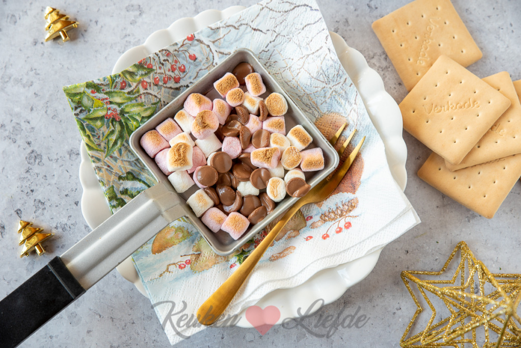 De gourmet afsluiten met een lekker toetje? De Amerikaanse s’ mores zijn niet alleen lekker om te roosteren boven het kampvuur, maar kun je ook perfect maken in een gourmetpannetje! Deze heerlijke traktatie van geroosterde marshmallows en smeltende chocolade tussen twee koekjes geklemd is niet voor niks een favoriet van jong én oud!