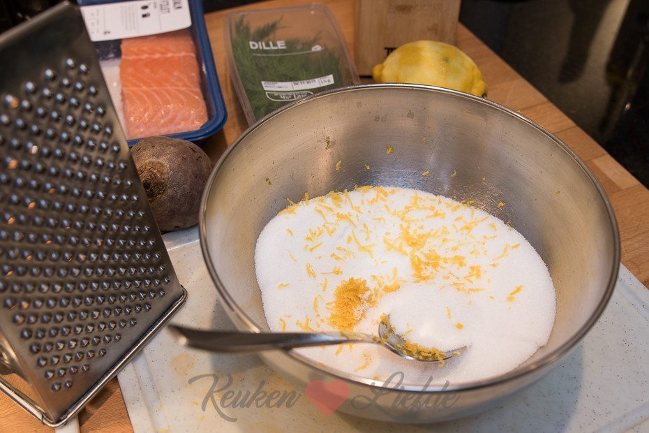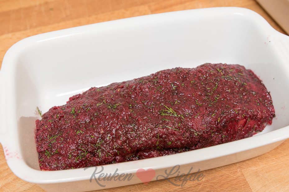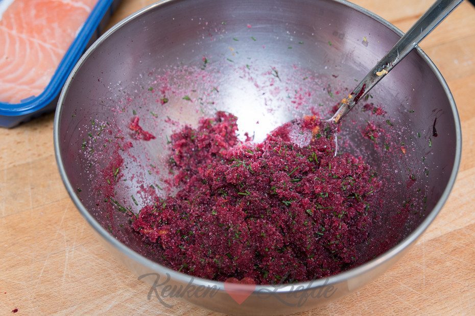 Gravad lax is een Zweedse klassieker en betekent eigenlijk gewoon begraven zalm. Het is een van de makkelijkste voorgerechten die je maar kunt maken, want het enige dat je hoeft te doen is de zalm te pekelen. Dat doe je heel eenvoudig door de zalm te bedekken met een mengsel van zout en suiker en 24 uur weg te zetten in de koelkast. Easy toch! Ik voeg ook nog geraspte biet toe aan de pekel om de zalm aan de buitenkant te voorzien van een prachtig, rood kleurtje. Feestelijkheid op en top! En dat het lekker is, dat spreekt voor zich. Geloof me!