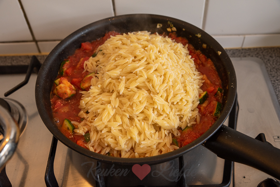 Kook ondertussen de risoni beetgaar volgens de omschrijving op de verpakking.