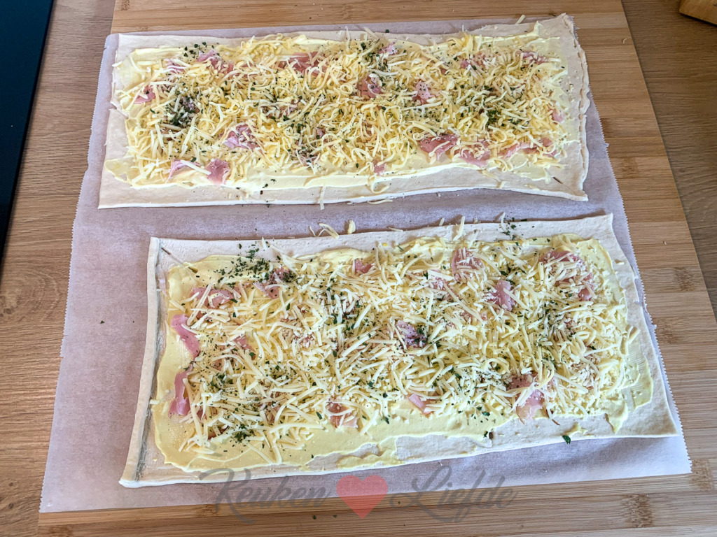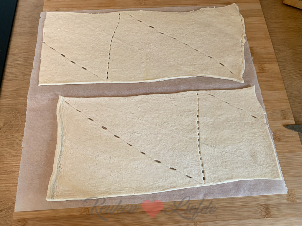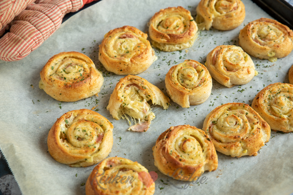 Variatietip! In plaats van croissantdeeg kun je ook een rol vers bladerdeeg gebruiken. Het is dan meer een hartig borrelhapje als ontbijt of lunch.