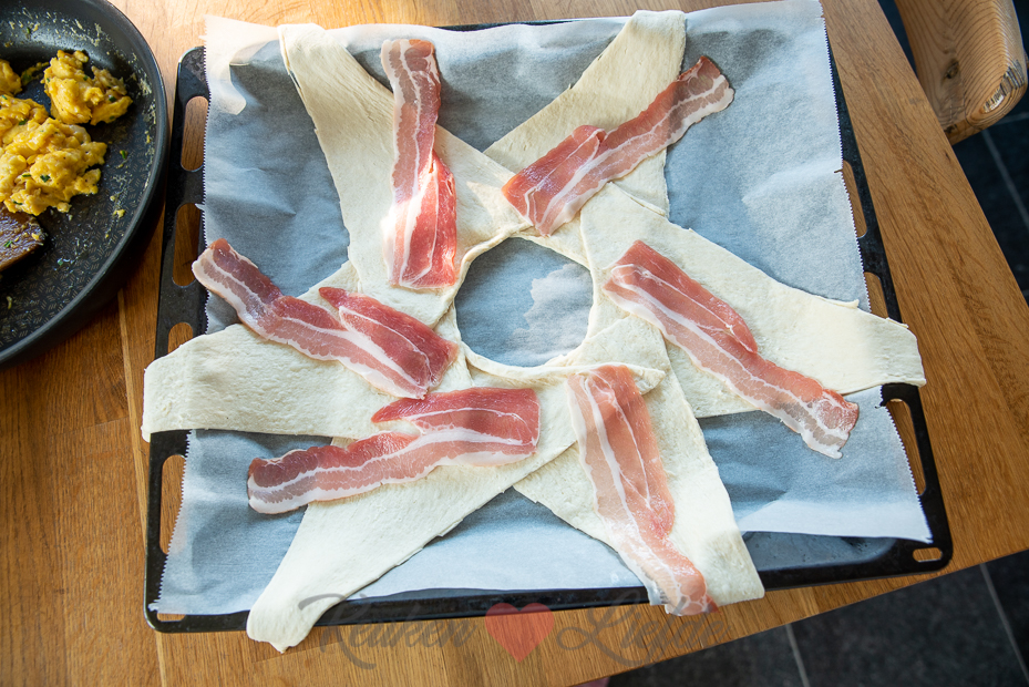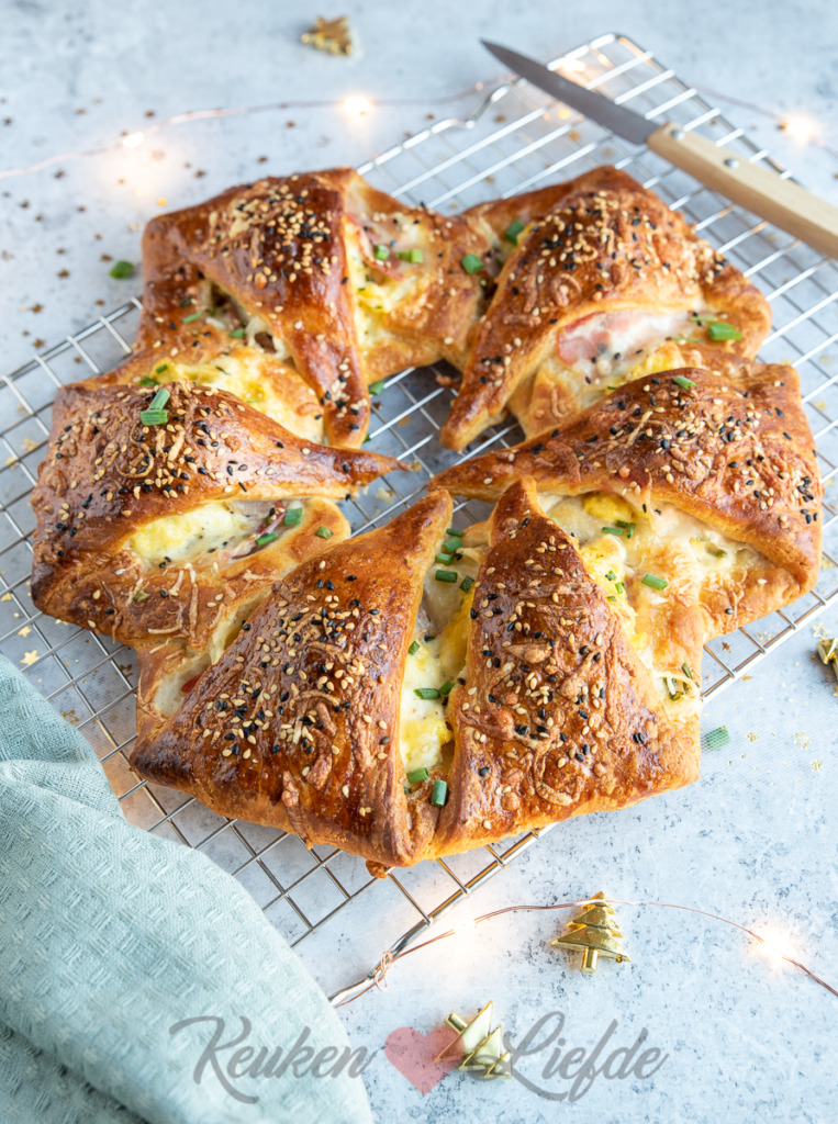 Samenwerking — Een feestelijk ontbijt maken voor kerst? Deze hartige croissantkrans met roerei en ontbijtspek is makkelijk om te maken en smaakt verrukkelijk. Bovendien ziet hij er prachtig uit. Wil je het jezelf met kerst nog gemakkelijker maken, dan kun je hem al een dag van tevoren maken. Moment suprême warm je hem afgedekt met aluminiumfolie weer even op in de oven; circa 20 minuutjes op 175 graden. Hij smaakt dan weer als versgebakken.