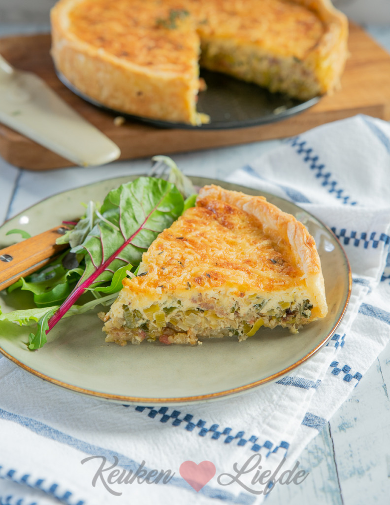 Met de vulling van hartige taart kun je eindeloos variëren. Het korstdeeg maak je makkelijk (en heel lekker) zelf, of je koopt kant-en-klaar deeg. Gemak dient de mens! Deze hartige taart met een vulling van prei, spek en kaas is heerlijk en snel gemaakt. Lekker om te serveren met een groene salade.