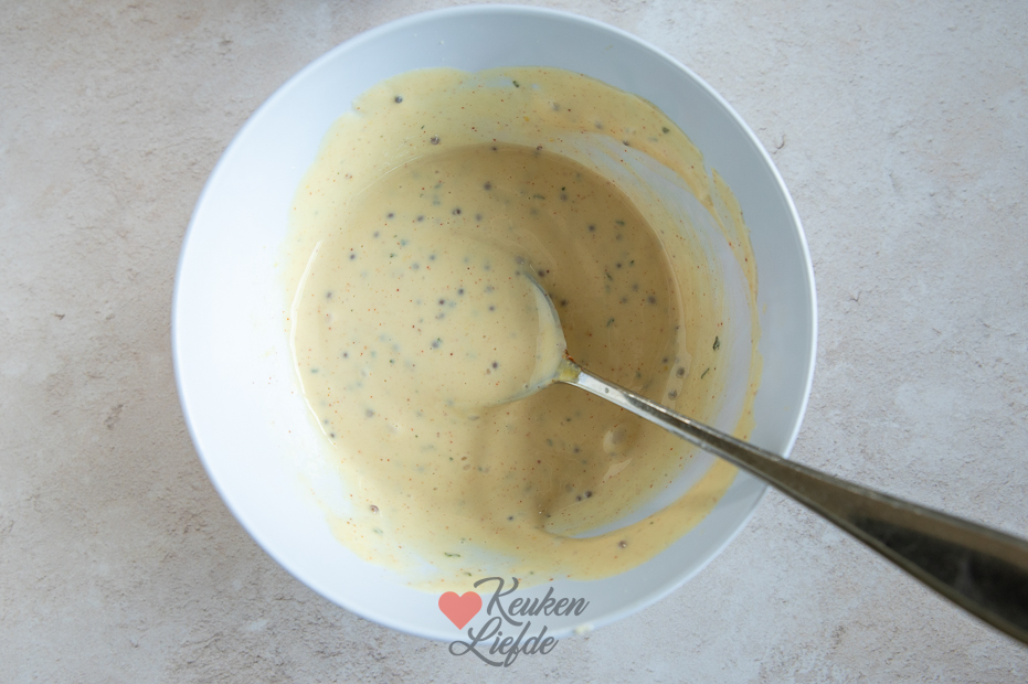 - 1 tl dijonmosterd, of milde, grove mosterd