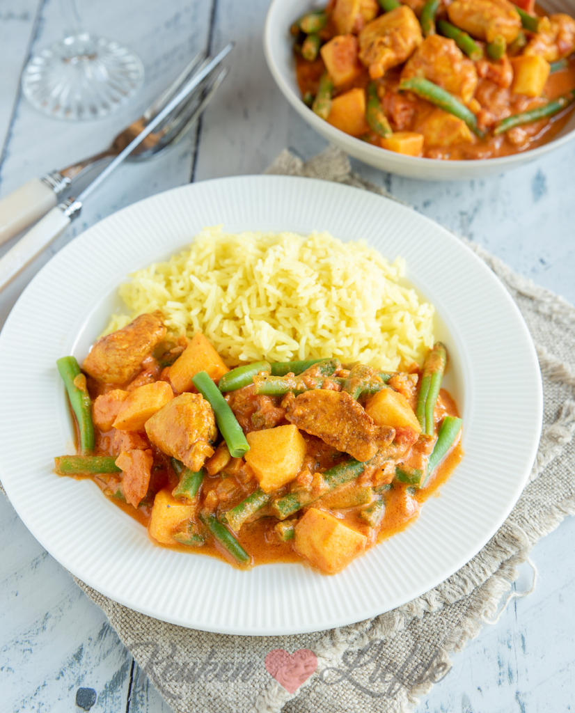 Een heerlijke Indiase curry met kip in een licht pittige en romige tomatensaus met sperziebonen en appel. Dit is geen authentiek Indiaas recept, maar wel een variant zoals wij hem in Nederland vaak eten. Ook wij Verweijtjes zijn er dol op. Het is een makkelijke maaltijd die snel op tafel staat en iedereen is er dol op. De madraskruiden maak je heel makkelijk zelf, maar als je niet alle specerijen in huis hebt kun je ook kant-en-klare madraskruiden kopen.