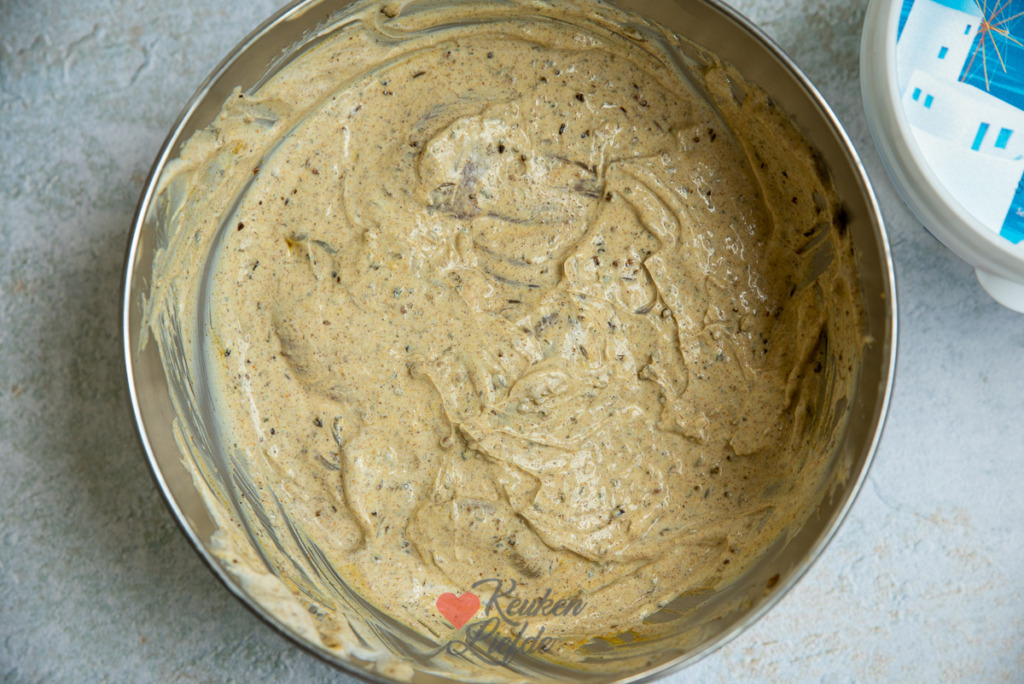 Dek de kom af en zet een nacht in de koelkast om te marineren.