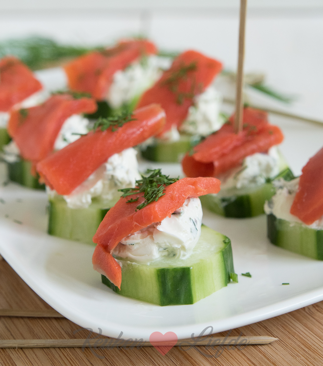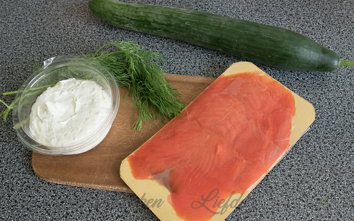 Dit heerlijke komkommerhapje met roomkaas en zalm is het perfecte hapje om te serveren op een verjaardag of feestje. Hij is gemaakt in een handomdraai. Maak er genoeg want ze vinden gretig aftrek!