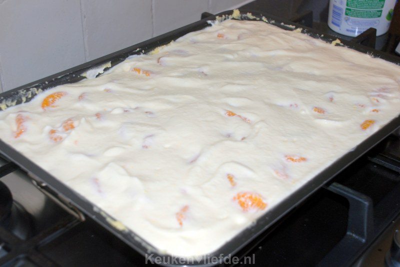 Kwarktaart met mandarijn en meringue. Deze heerlijke kwarktaart heeft een zachte cakebodem en romige kwarkvulling met mandarijn. De kleine toefjes zoete meringue bovenop maken het af! Hij wordt gebakken op het bakblik in de oven. Genoeg dus voor een groot gezelschap!