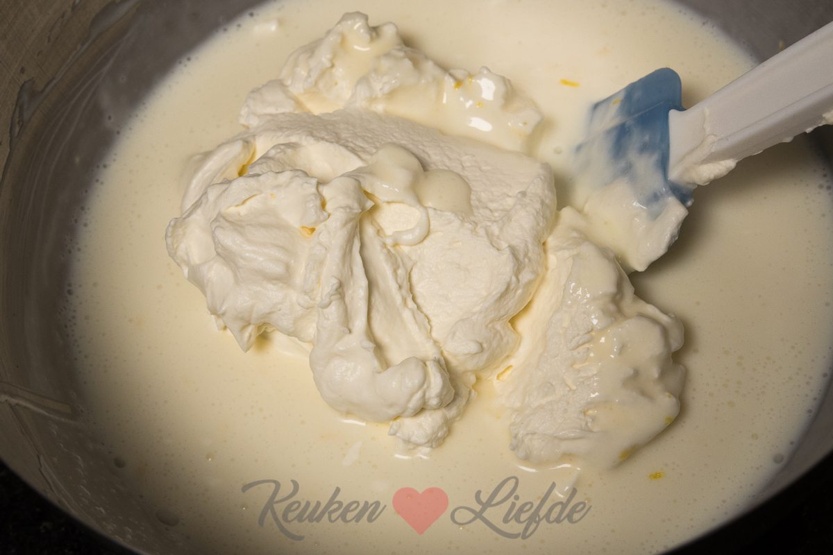 Misschien is het een idee om de lange vingers eerst te dippen in het citroen mengsels. Ik heb heel voorzichtig gegoten maar grotendeels van de lange vingers kwamen naar boven drijven.