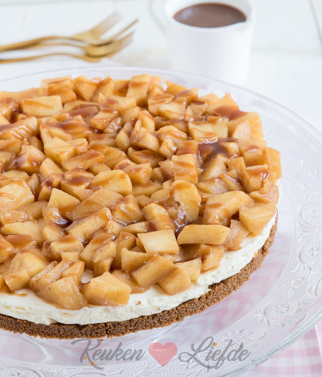 Deze taart is echt goddelijk lekker! Bedankt voor het recept! Heb hem voor pakjesavond gemaakt en iedereen vond hem waanzinnig lekker! De karamelsaus maken was echter geen succes. Door het water met de suiker langzaam op te zetten werd de massa helemaal niet bruin. Het duurde enorm lang en het water verdampte en de suiker kristalliseerde tot 2x toe. Toen bedacht ik me dat met het maken van de appelcompote waar je boter bij gebruikt, het bij de appeltjes wel al een beetje ging karameliseren. Ik heb toen op Laura’s Bakery een recept voor makkelijke karamelsaus gevonden. Deze was door toevoeging van boter zo klaar en was echt superlekker! Kortom ik zou de saus niet met water maken, dit is erg lastig en het water verdampt, waardoor de hele boel kristalliseert. Met boter gaat het prima.
