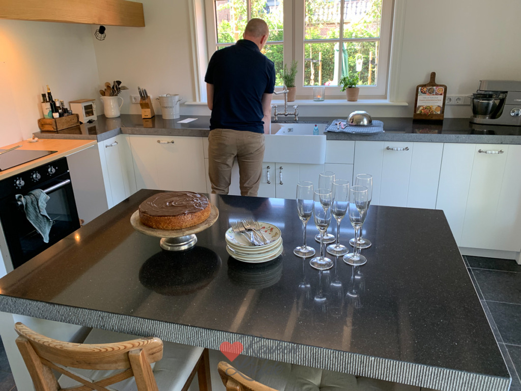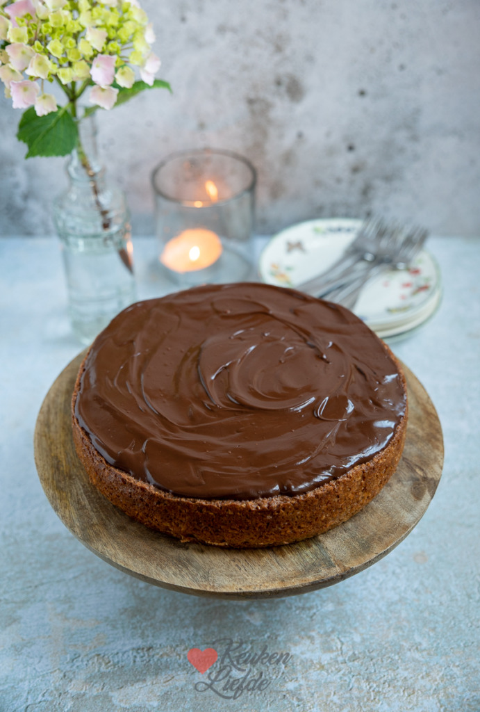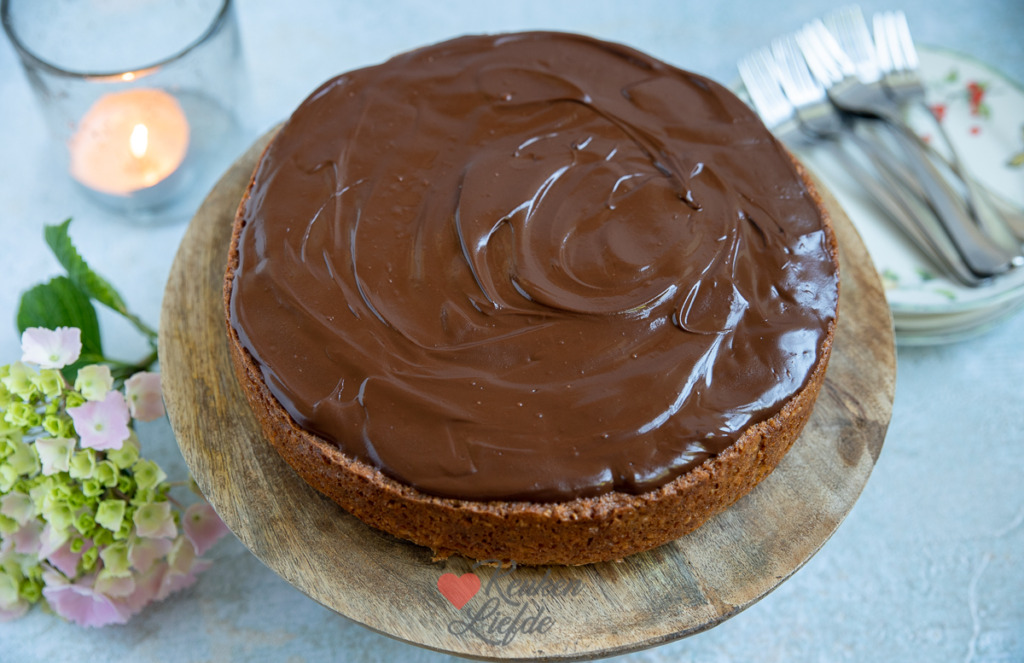 De volgende dag vond ik deze notentaart met amaretto en chocoladeglazuur stiekem nóg lekkerder smaken. De smaken zijn dan beter ontwikkeld en zachter. Je kunt deze taart dus prima al een dag van tevoren maken. Het chocoladeglazuur wordt in de koelkast wat harder maar is door de boter nog wel snijdbaar. Als je liever zacht glazuur hebt dan kun je deze het beste op de dag zelf op de taart smeren.