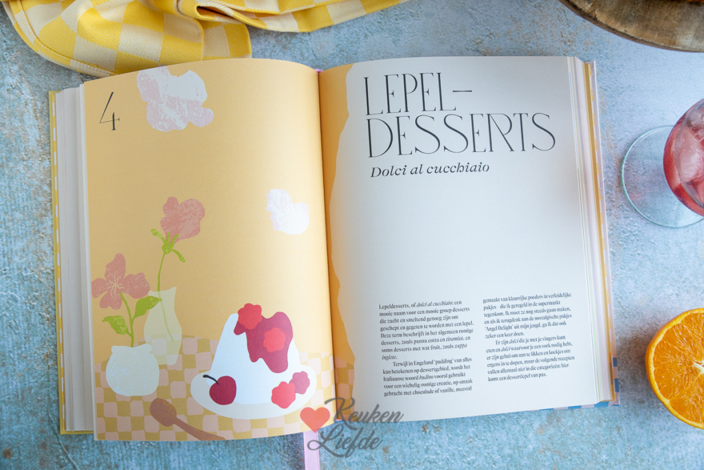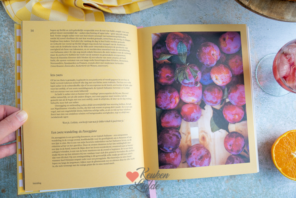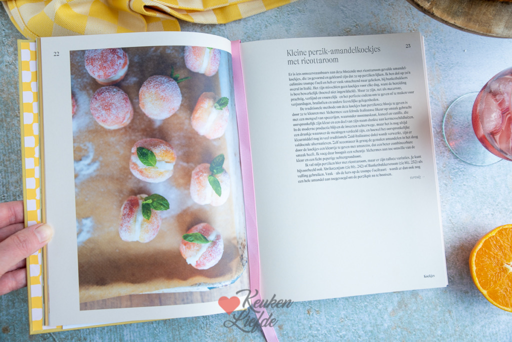 Dit recept komt uit het nieuwste boek La Vita è dolce (Italiaanse zoetigheden) van schrijfster Letitia Clark (een Engelse zoetekauw die op Sardinië woont). Een prachtig boek met persoonlijke verhalen over de Italiaanse manier van leven en bomvol zoete recepten uit de Italiaanse keuken. Werkelijk alle recepten uit dit boek wil ik maken. De amaretti, cassata, perzik-amandelkoekjes, panna cotta, tiramisù, chocolade-notentaart, cannoli, citroen sorbet en ga zo maar door. Het boek is onderverdeeld in zeven hoofdstukken: koekjes, krokante taarten, cakeachtige taarten, lepeldesserts, gegist en gebakken, gelato en cadeautjes.