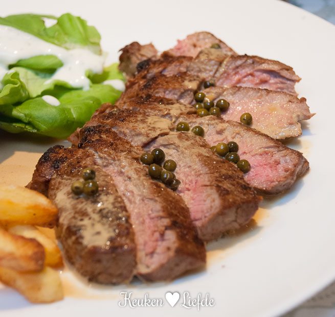 Eén van mijn favoriete vleesgerechten is malse ossenhaas biefstuk geserveerd met romige pepersaus. De pepersaus met knapperige peperbolletjes maak je heel eenvoudig zelf.