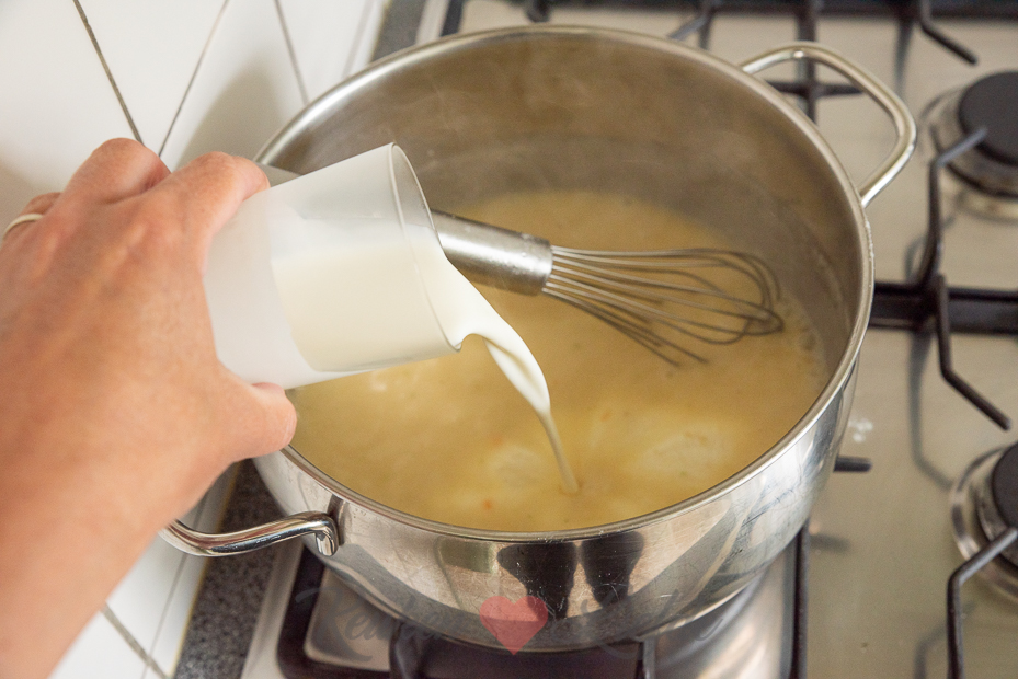 Je kunt kookroom light en kaas met minder vet gebruiken.
