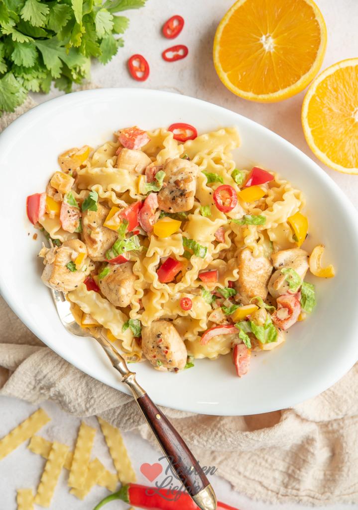 Pasta met kip en sinaasappelsaus