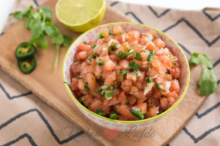 Eenvoud op zijn best, daar is pico de gallo een perfect voorbeeld van. Het is een Mexicaanse saus/salade van fijngesneden blokjes tomaat gemengd met wat ui, limoensap, koriander en groene peper of paprika, in de kleuren van de Mexicaanse vlag. Ik vind het erg lijken op tomatensalsa — eerlijk gezegd heb ik geen idee wat het verschil is!