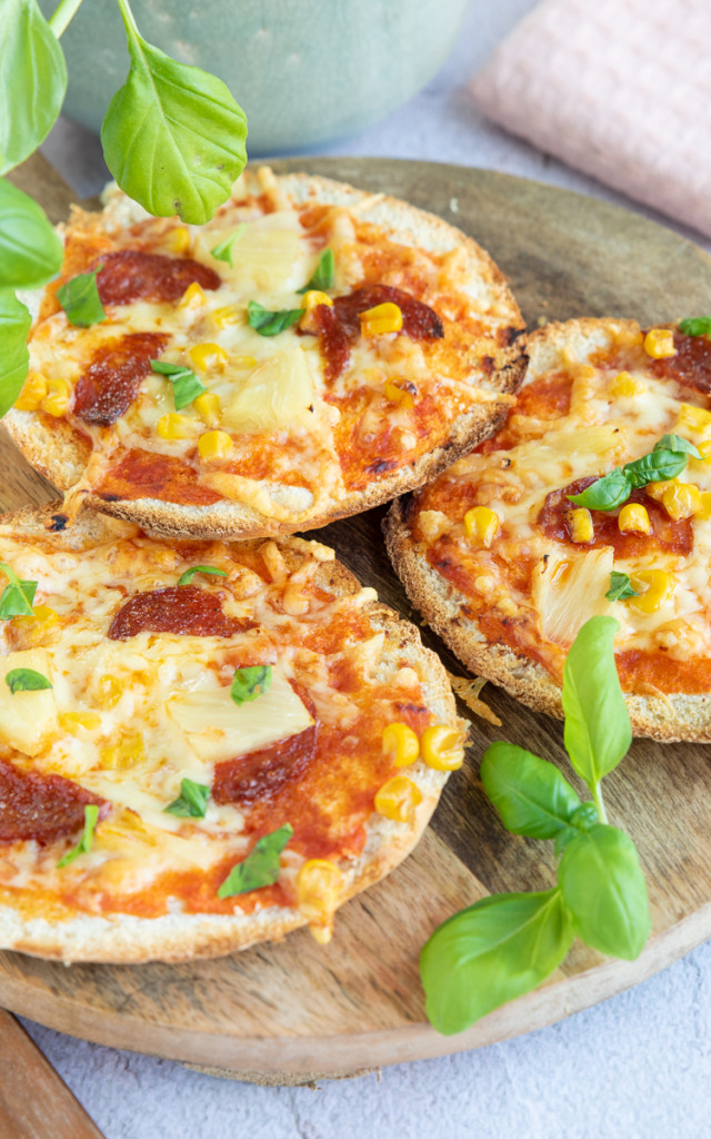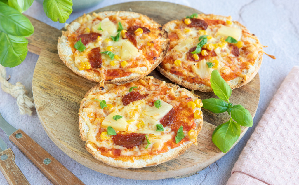 Met pitabroodjes tover je in een handomdraai iets lekkers op tafel. Je kunt ze natuurlijk vullen, maar ook opensnijden en beleggen als een pizza. Je krijgt dan een heerlijk krokante bodem! Deze pita pizza belegd met kaas, chorizo en ananas smaakt heerlijk als lunch, of serveer voor het avondeten met een kommetje soep erbij. Zie ook onderstaande tip.
