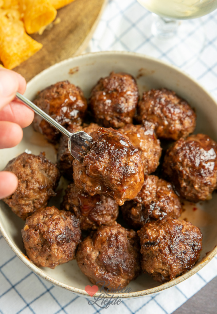 Deze licht pittige gehaktballetjes in zoete ketjap-chilisaus zijn de perfecte snackballetjes om vanavond op tafel te zetten tijdens de eerste WK-wedstrijd in Qatar van ons Oranje. Je kunt deze gehaktballetjes van tevoren maken en afgedekt in de koelkast bewaren. Serveer ze koud of warm ze op laag vuur op in de saus.