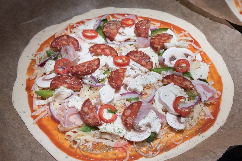 De topping van mijn pizza is meestal afhankelijk van wat er op dat moment in de koelkast ligt. Dit keer werd het een pizza belegd met ondere andere chorizo en geitenkaas. De combinatie was zo lekker dat ik het recept graag met je deel.