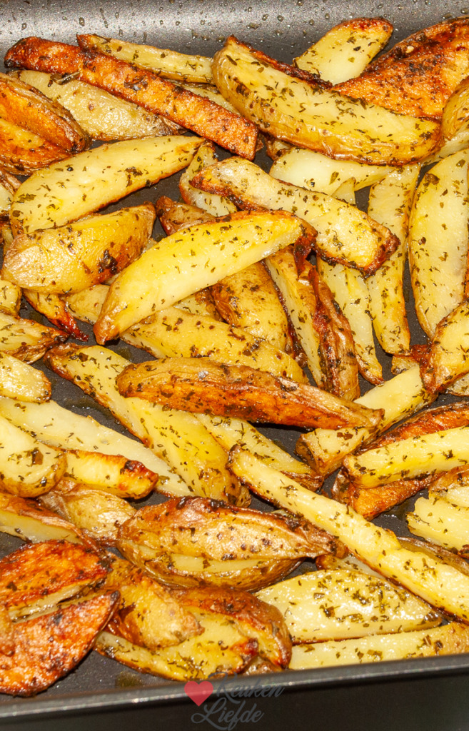 Je kunt deze aardappeltjes ook in de airfryer bakken. Zie de omschrijving tussen haakjes in de bereiding hieronder.