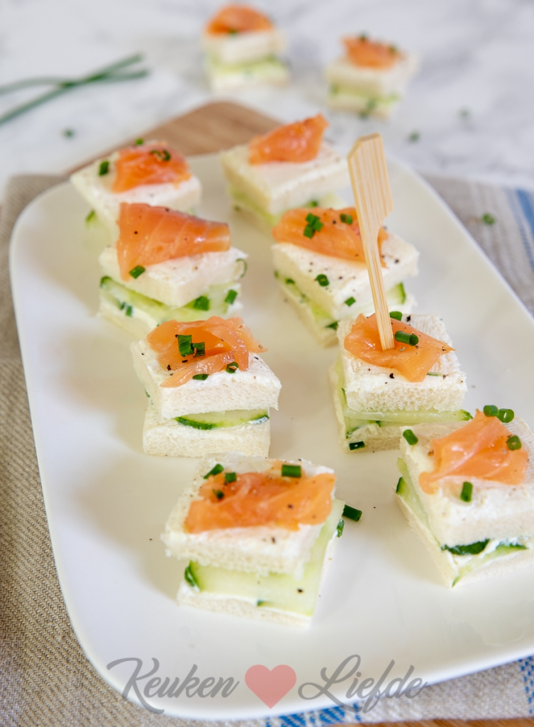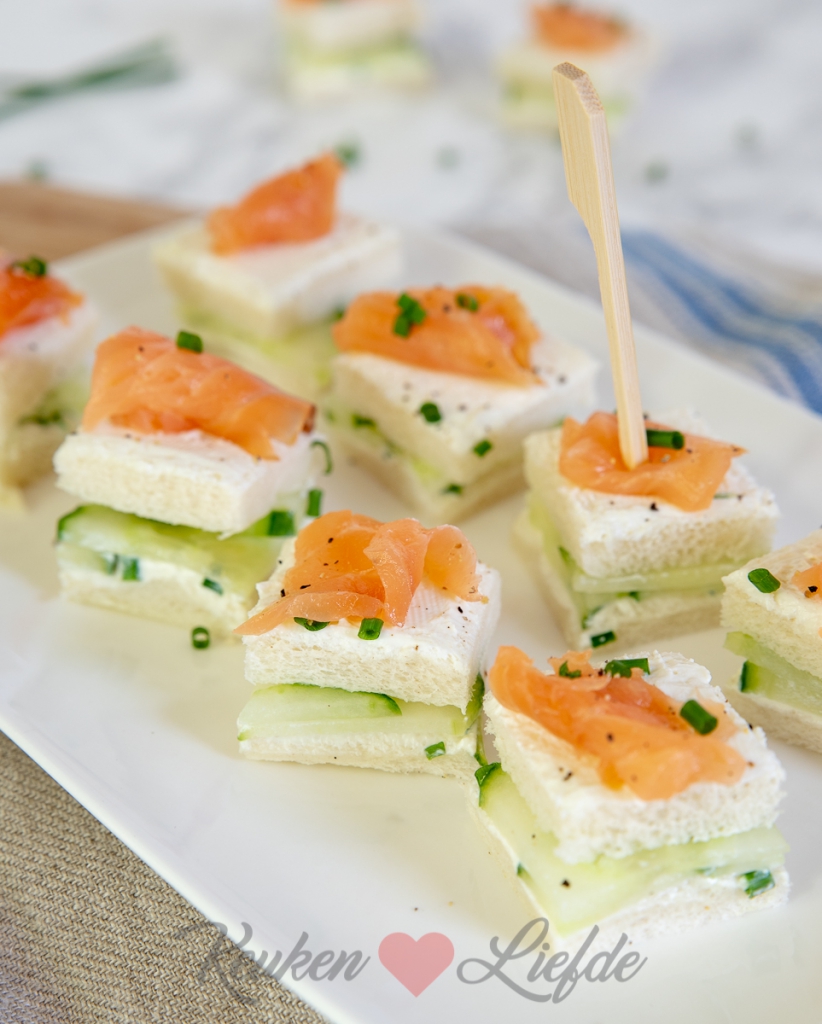 Je kunt deze sandwich hapjes trouwens ook serveren bij een high tea, of neem ze verpakt mee naar een zomerse picknick!