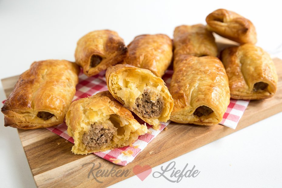 Nu jaren later had ik er weer zin in. Ik maak ze op dezelfde manier zoals mijn moeder dat doet, alleen gebruik ik half-om-half gehakt in plaats van rundergehakt. Half-om-half gehakt is wat vetter dan rundergehakt en past qua mondgevoel beter bij het vettige bladerdeeg. Bovendien is het vlees na bereiding veel sappiger dan rundergehakt. Deze saucijzenbroodjes zijn minstens zo lekker als van een goede bakker!