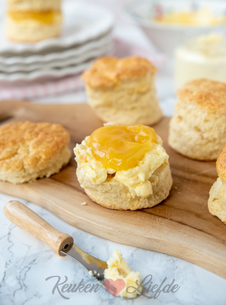 Maak de scones volgens dit recept. De scones zijn het lekkerst als ze warm uit de oven komen. Eenmaal afgekoeld worden ze wat vaster.