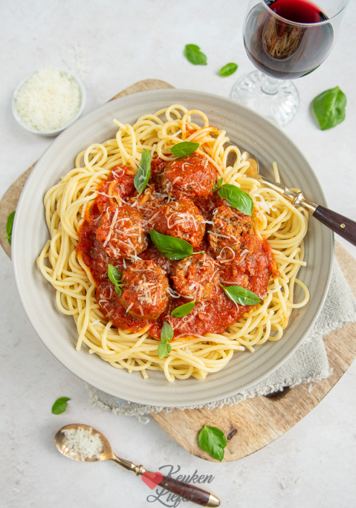 Spaghetti met gehaktballetjes in tomatensaus is één van mijn favoriete Italiaanse gerechten. Het is niet alleen supermakkelijk om te maken, maar ook een echte klassieker die altijd een glimlach aan tafel tovert. Perfect om samen van te genieten met familie of vrienden!