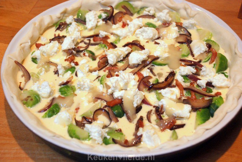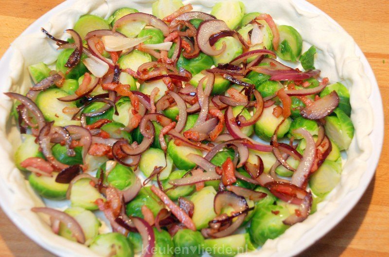 1. Hoi Moniek, leuk om te horen dat hij in de smaak valt! 🙂 Zou het kunnen dat de bodem wel gaar is maar misschien klef is door het vocht uit de spruitjes en daardoor niet gaar lijkt? Om dit te voorkomen kun je een paar eetlepels paneermeel over de bladerdeegbodem strooien. Dit absorbeert het vocht uit de spruitjes waardoor de bodem toch knapperig wordt. En je proeft er niets van terug. Ik heb het erbij gezet in het recept.