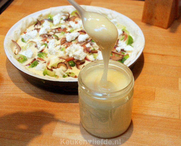 Spruitjesquiche met geitenkaas en honing