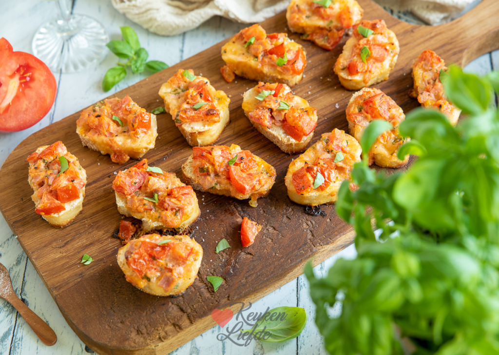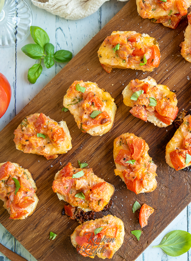 Recepten voor borrelhapjes kun je nooit genoeg hebben toch? Dit stokbrood hapje met tomaat, ham en mozzarella serveer je warm uit de oven. Je maakt hem in minder dan tien minuten tijd en daarna bak je hem nog tien minuten in de oven. Het is een heerlijk warm hapje om te serveren op een verjaardag of feestje, tijdens een filmavondje, of gewoon omdat je er zin in hebt.